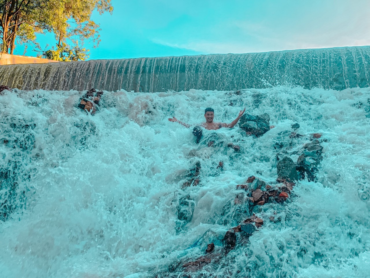 Du khách khám phá con suối bên trong hồ Vai Miếu