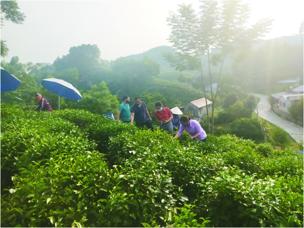 Du khách trải nghiệm hái chè cùng bà con. Ảnh: Thành Hải.