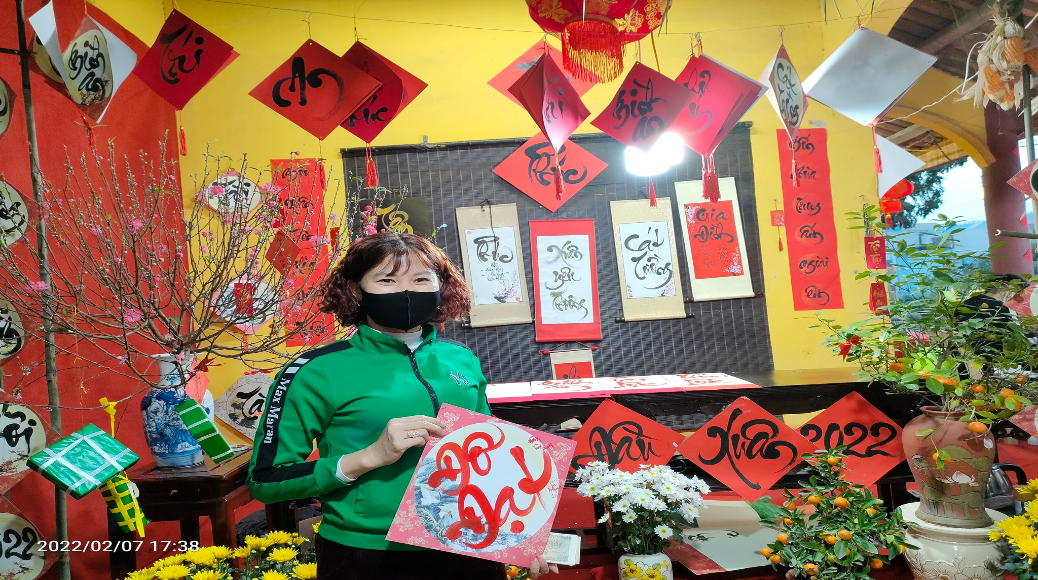 Du khách xin chữ thư pháp tại chùa.