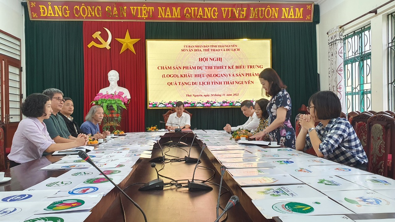 Nhằm lựa chọn mẫu Biểu trưng (Logo) và Khẩu hiệu (Slogan) du lịch tỉnh Thái Nguyên để sử dụng chính thức trong các hoạt động thông tin tuyên truyền, xúc tiến quảng bá du lịch; lựa chọn sản phẩm lưu niệm, quà tặng du lịch để phục vụ khách du lịch, sáng ngày ngày 24/11/2022, Sở Văn hóa, Thể thao và Du lịch tổ chức chấm sản phẩm tham dự cuộc thi thiết kế Biểu trưng, Khẩu hiệu và sản phẩm lưu niệm quà tặng du lịch.