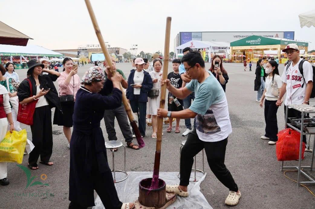 Đặc biệt, Thái Nguyên đã tổ chức trình diễn chế biến tại chỗ một số sản phẩm ẩm thực độc đáo, đặc trưng của tỉnh như: Trình diễn sao chè thủ công truyền thống, giã bánh dày ngũ sắc, nướng cá hồ Ba Bể,… Những hoạt động này không chỉ giới thiệu hương vị tinh túy của núi rừng Việt Bắc, mà còn lan tỏa tinh thần mến khách, đậm đà bản sắc của người dân xứ Trà giữa lòng Thủ đô.