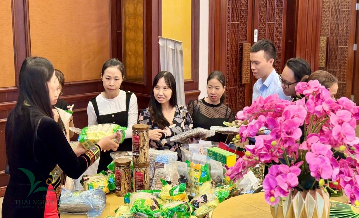 Đại biểu tìm hiểu một số nông sản, ẩm thực đặc trưng của Thái Nguyên trong khuôn khổ Hội nghị.