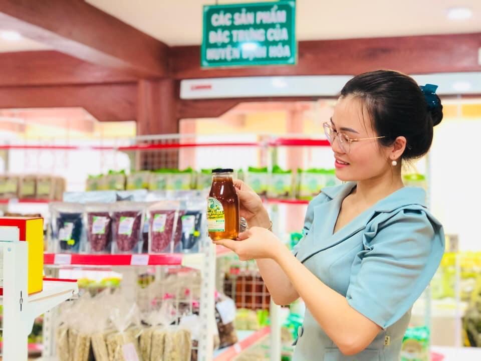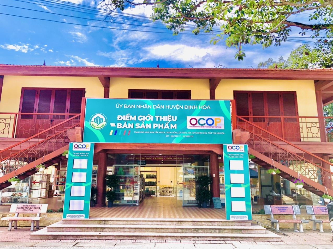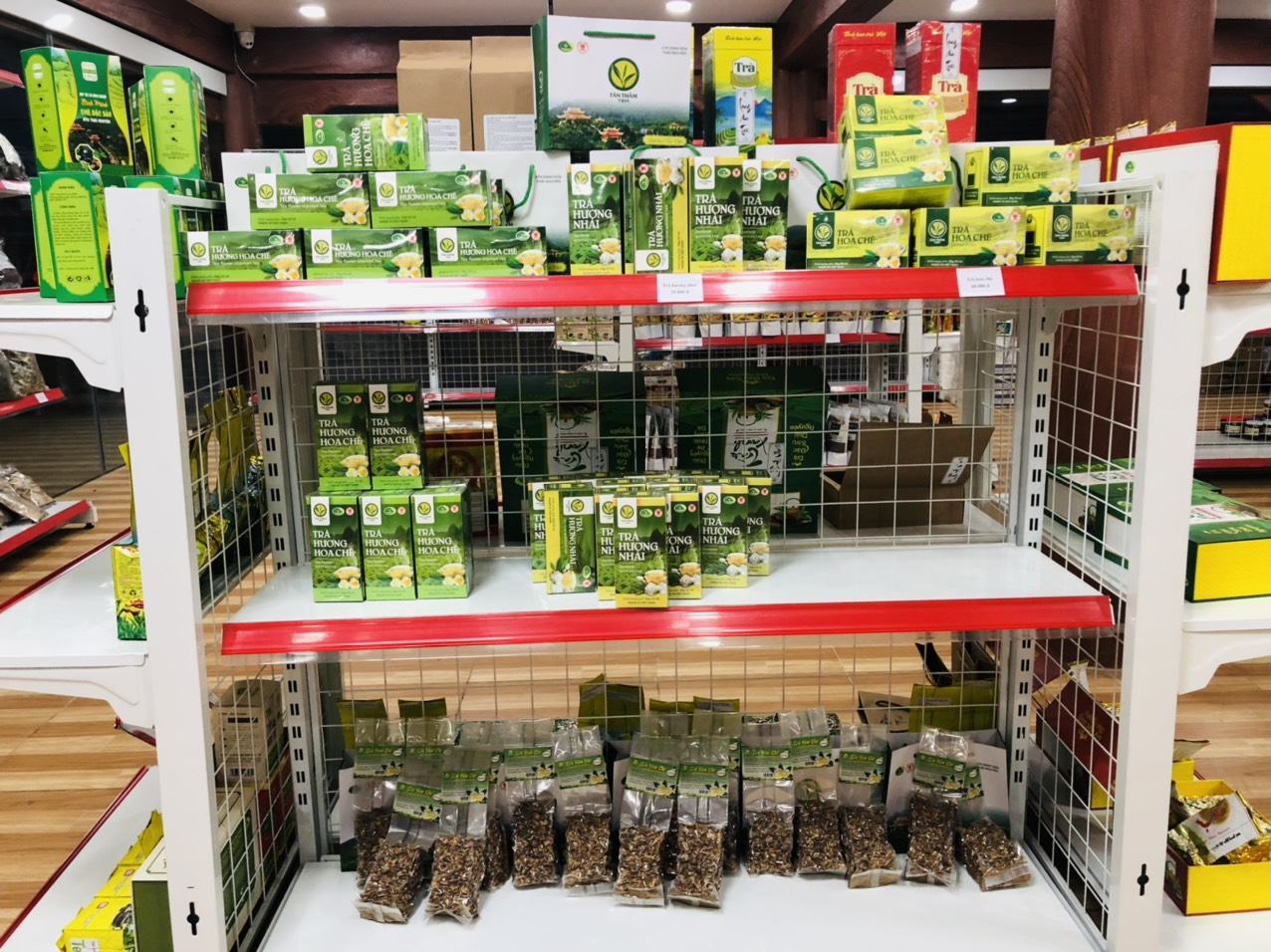 Gian hàng trưng bày và bán các sản phẩm OCOP huyện Định Hóa và một số sản phẩm đặc trưng vùng miền.