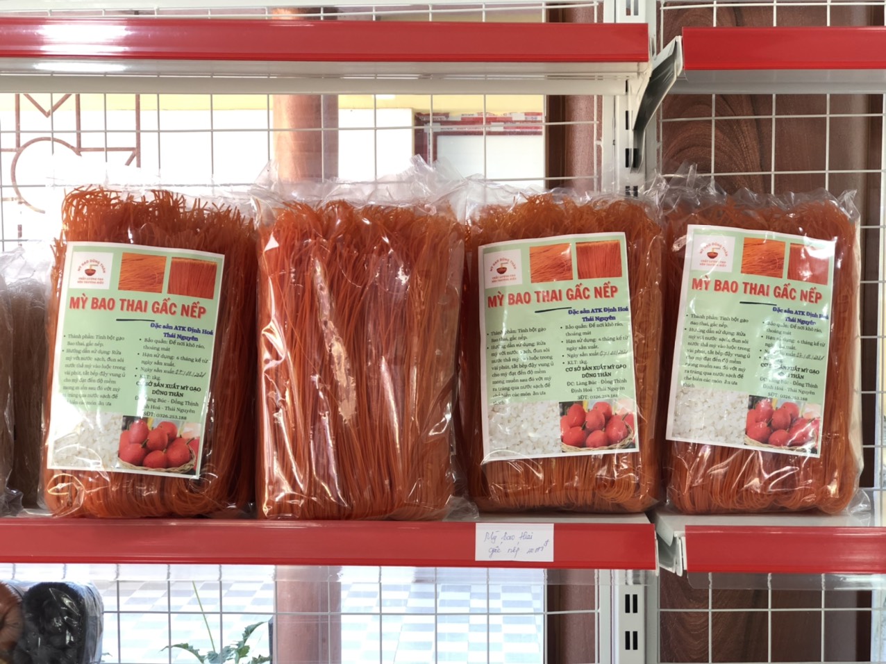 Các sản phẩm bao gồm: Gạo J02, gạo Bao Thai Định Hóa, gạo nếp cái, các sản phẩm mì gạo, các sản phẩm chè, măng khô, kẹo lạc, đũa cọ, mật ong, lạp sườn....