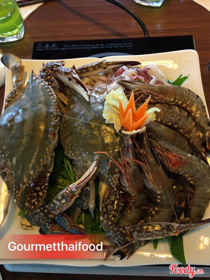 Nhà hàng Gourmet Thaifood Dòng Sông Xanh. Các món ăn phù hợp với: Ăn gia đình , Hẹn hò , Uống bia - Nhậu , Họp nhóm. Địa chỉ: Tầng 3, Khách Sạn Dòng Sông Xanh, Đầu Cầu Gia Bảy, Tp. Thái Nguyên, Thái Nguyên