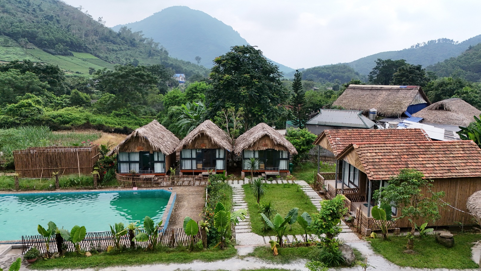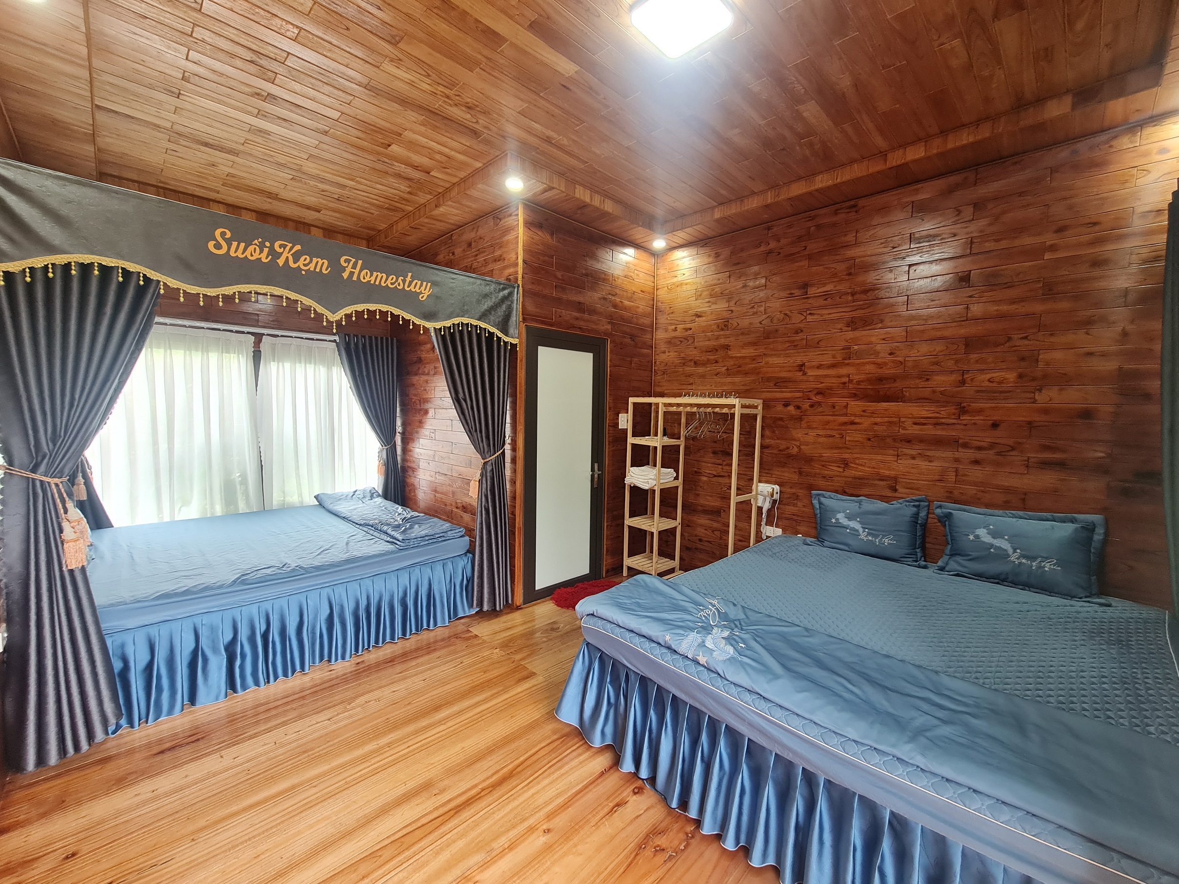 Dịch vụ homestay tại đây có 5 căn bungalow với thiết bị tiện nghi tương đối đầy đủ và được thiết kế rất tinh tế, theo hướng hòa mình với thiên nhiên. Mỗi căn có thể nghỉ được 4 người lớn với chi phí khá hợp lý, dao động từ 600.000đ-800.000đ/đêm vào ngày thường và từ 800.000đ-1.000.000đ/đêm vào ngày cuối tuần.
