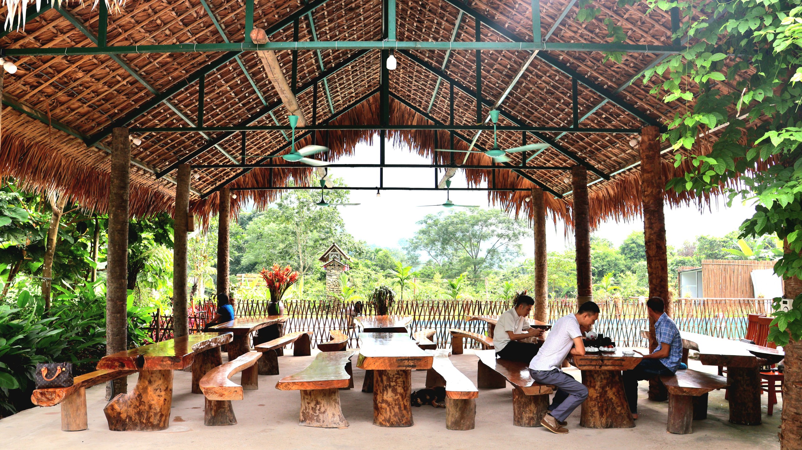 Nhà hàng tại đây chuyên phục vụ các món ăn chế biến từ cá tầm như: Gỏi cá tầm, cá tầm nướng, chiên, hấp xì dầu và cháo cá tầm. Ngoài ra còn có nhiều món ăn dân dã với nguồn nguyên liệu tại chỗ của bà con gồm: Gà đồi, cá suối, lợn bản, măng rừng…