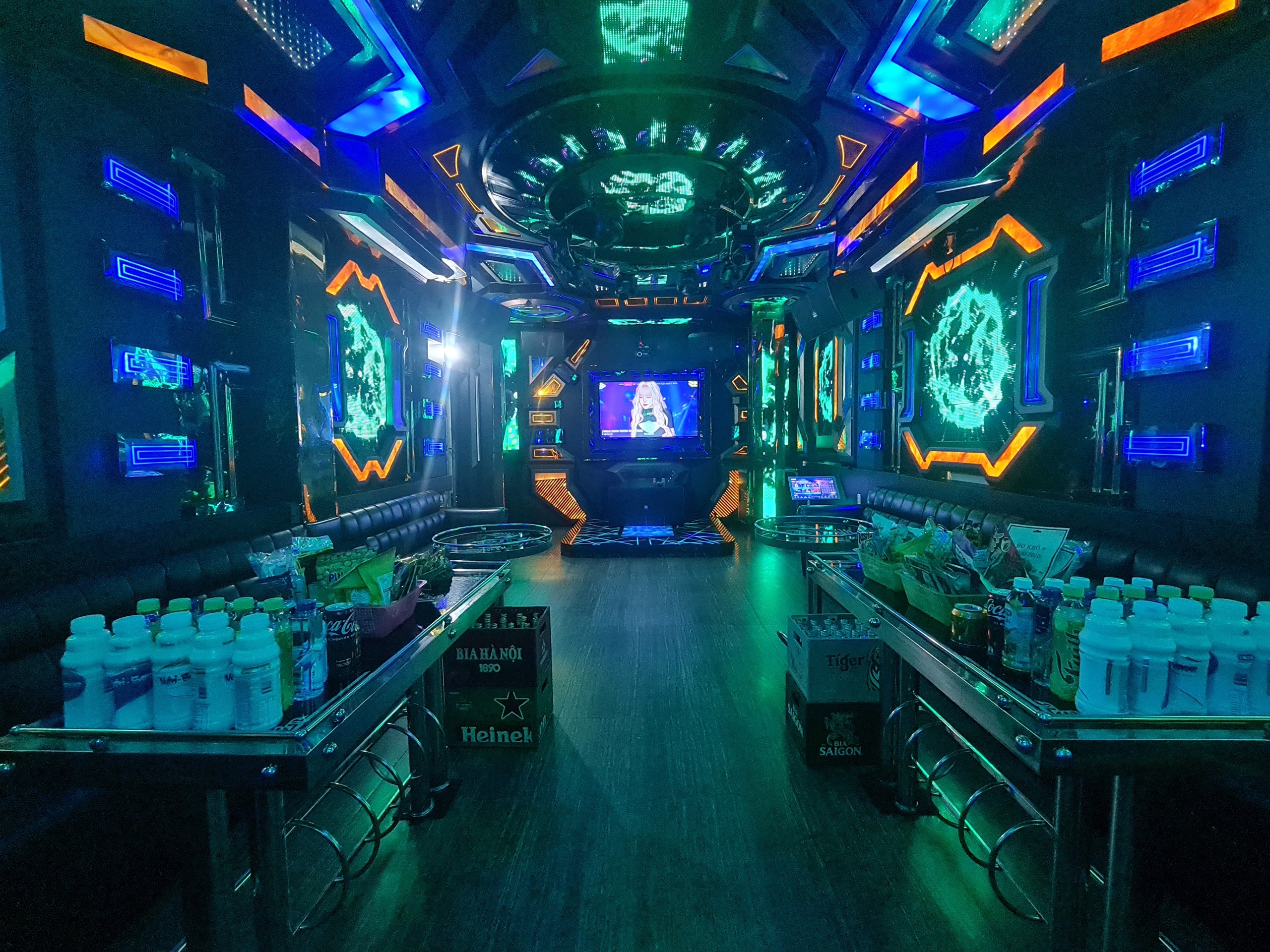 Dịch vụ Karaoke tại đây có 10 phòng Vip, mỗi phòng được decor mang màu sắc khác nhau. Tất cả đều được trang bị hệ thống âm thanh công suất lớn, đèn led siêu hiện đại.